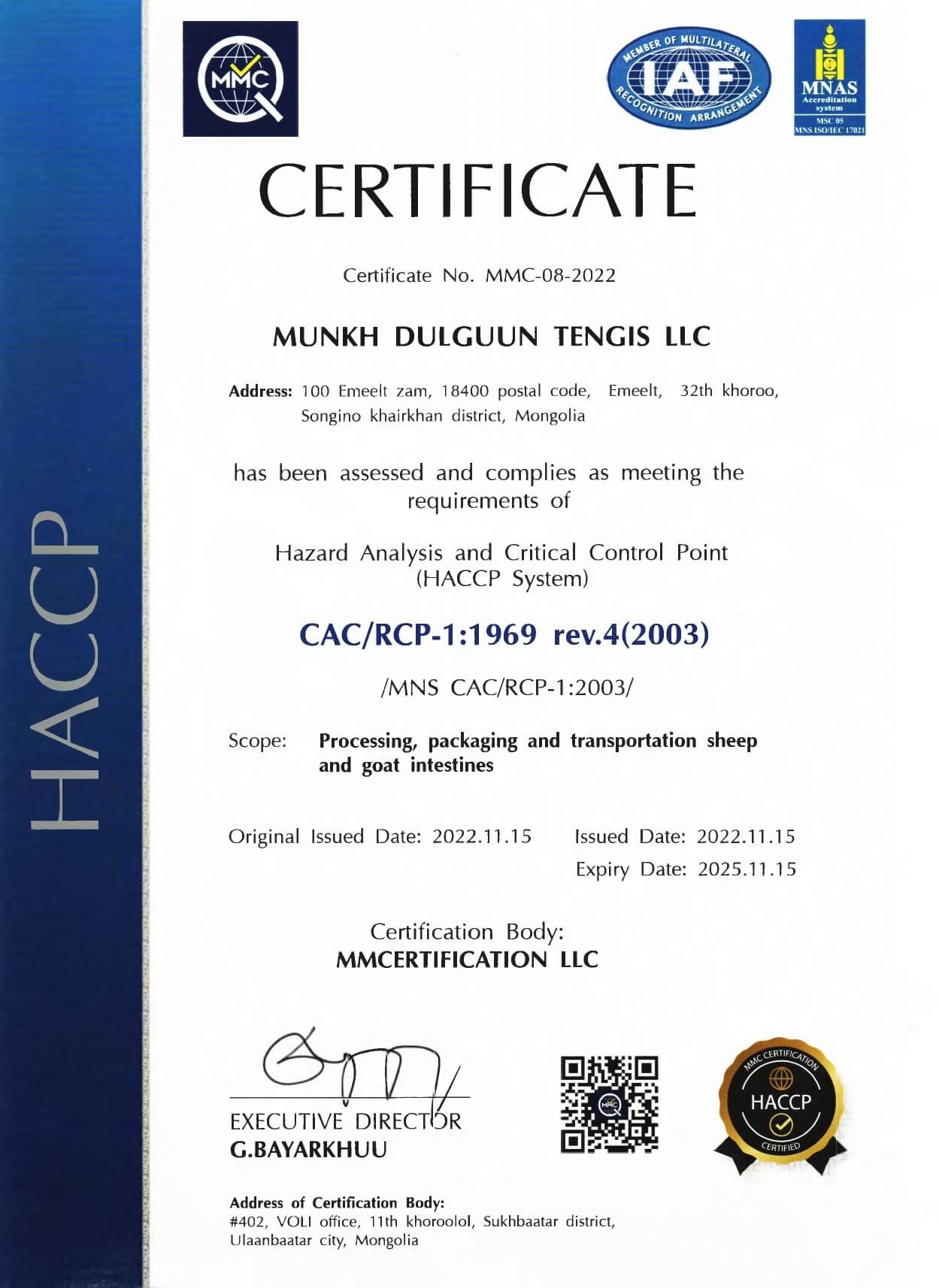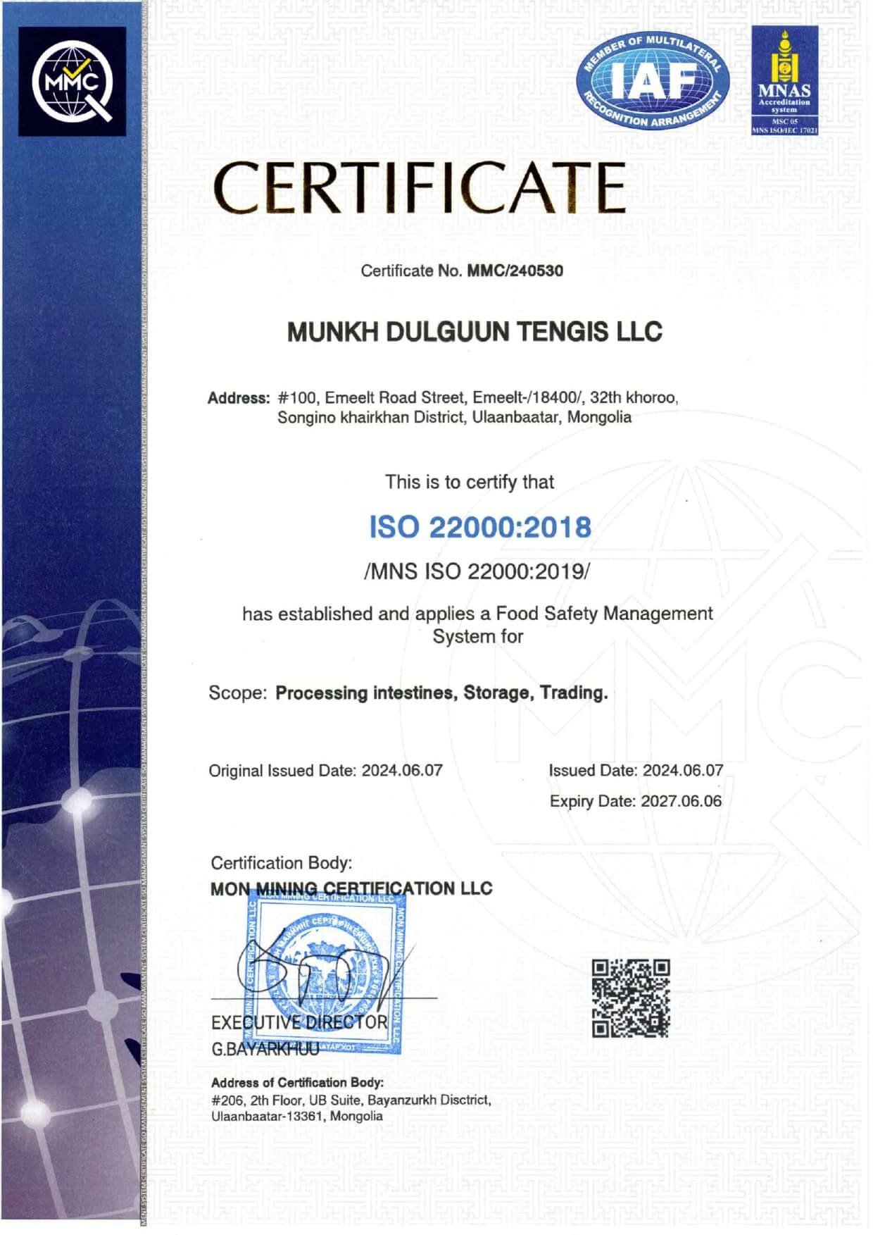 Starting from 2024, we have implemented the Food Safety ISO 22000 standards.